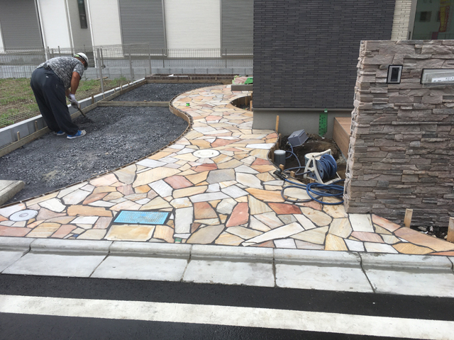 (外構工事)アプローチ石張り工